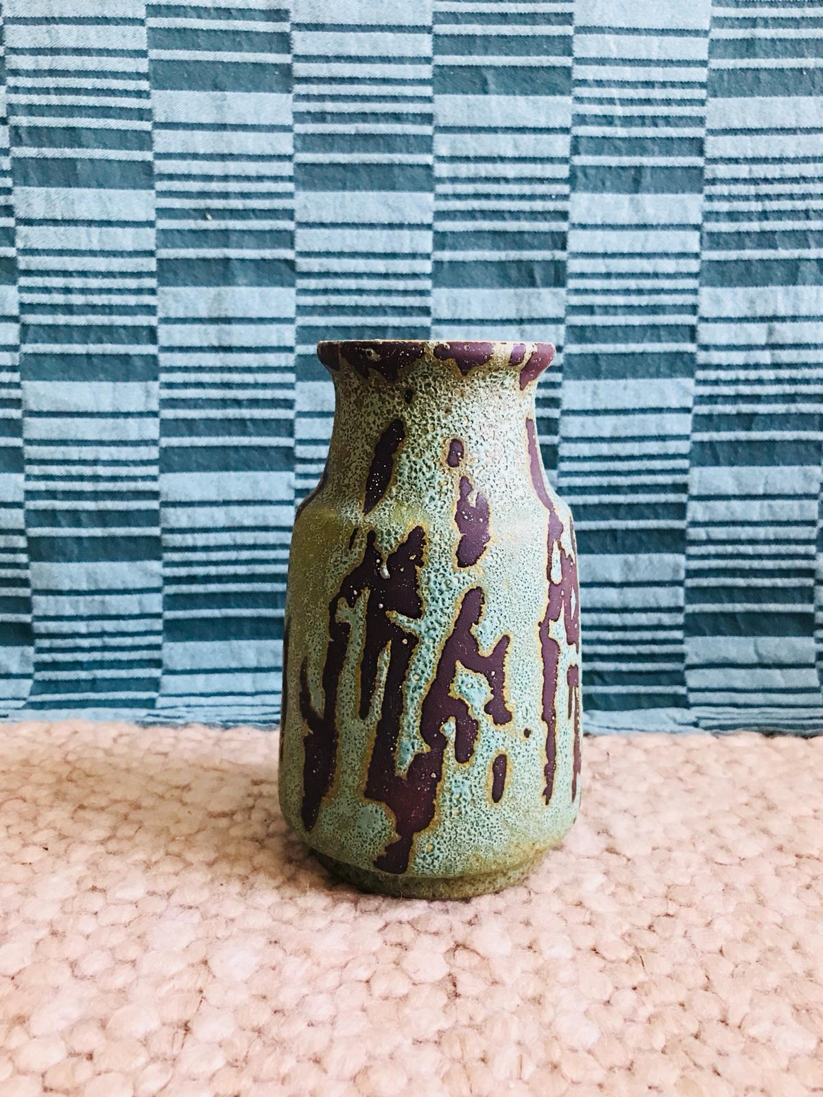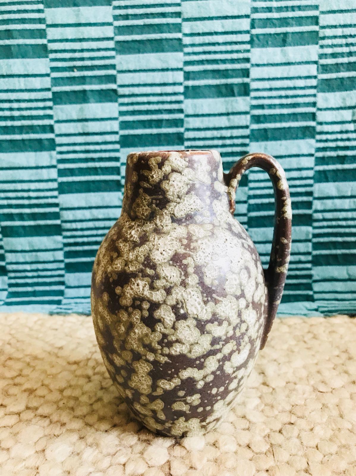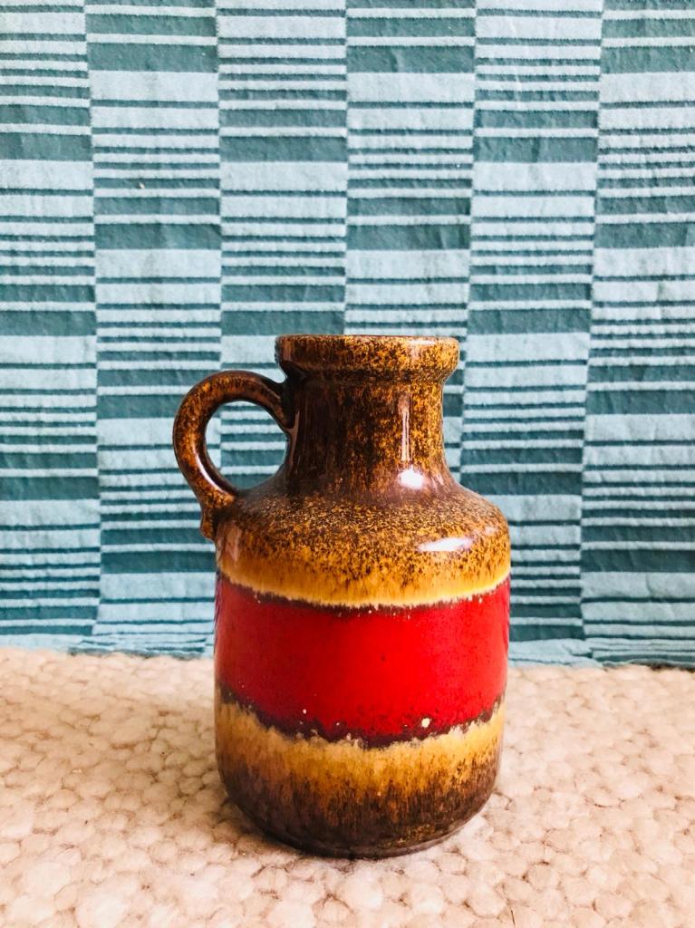 Diese bauchige Vase mit Henkel ist ein typisches Beispiel für deutsche Keramik der 60er und 70er-Jahre. Natürlich wusste ich das damals noch nicht. Ich fand sie in einem Badezimmer-Schrank, sie war versteckt im hintersten Winkel. Sie gefiel mir auf Anhieb und ich nahm sie mir als Erinnerungsstück mit.